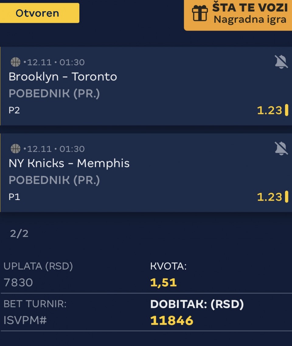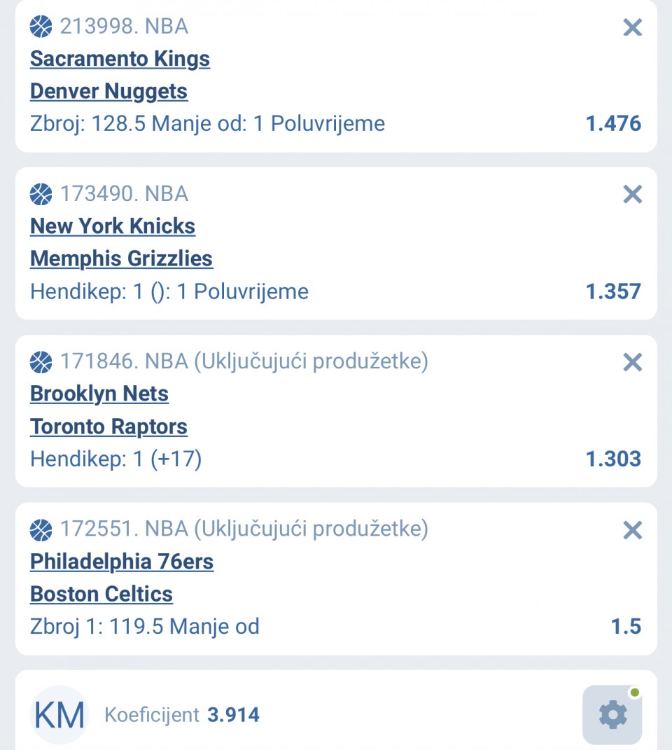 Veliki pozdrav želim da uputim svima za ceo dan, od sinoćnjeg NBA i Evrolige danas na ogromnoj podršci i nadam se da ste uspeli da vežete bilo šta od tih pikova, a sada da zatvorimo ovo veče kako dolikuje, nažalost ne stižem da postavim detaljnu...Veliki pozdrav želim da uputim svima za ceo dan, od sinoćnjeg NBA i Evrolige danas na ogromnoj podršci i nadam se da ste uspeli da vežete bilo šta od tih pikova, a sada da zatvorimo ovo veče kako dolikuje, nažalost ne stižem da postavim detaljnu analizu pa ću proći samo kratko kroz tipove!