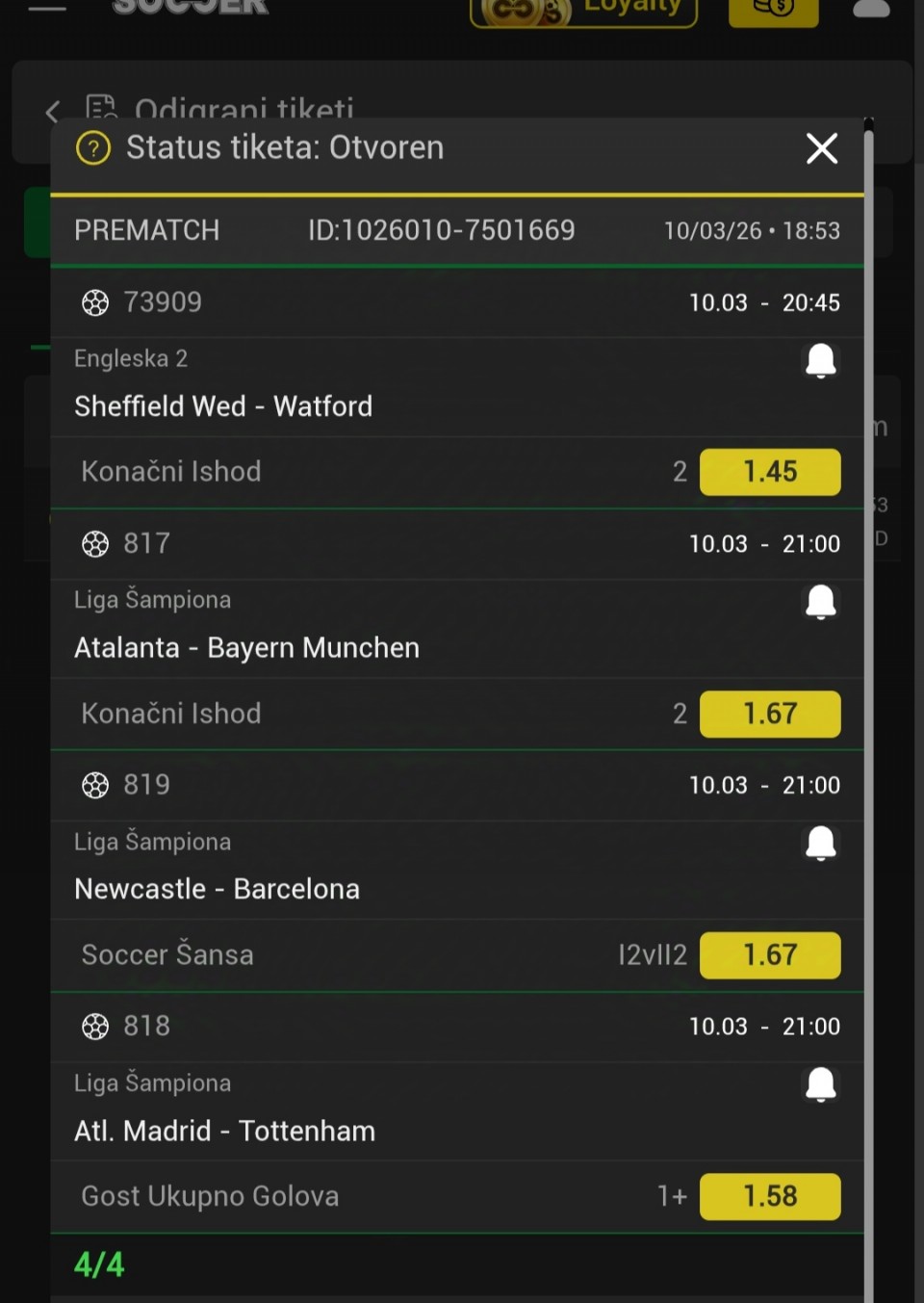 Atletico M - Tottenham D2+ 1.85 (Vidio sam da je dosta ljudi tipovalo ovako za Atletiko, prvi put kada sam vidio kvota je bila oko...Prijedlozi LS 10.3