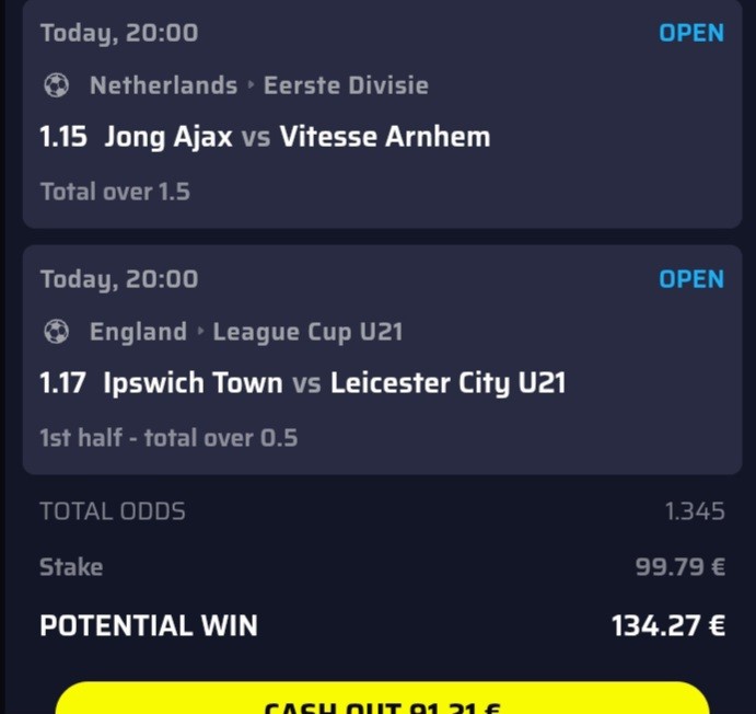 Dva vezana medjusobna prelaza po jedan sa obe strane. Golovi u 90+, penali i autogolovi. Pa vredi probati. Prastajte za spaam.