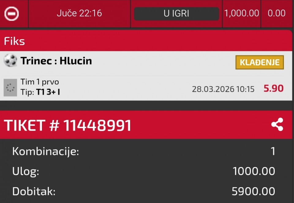 Nastavljamo dalje, večeras 3 ranija NBA termina. U toku dana stižu 2...Profit u jučerašnjem danu je oko 800 maraka (400) eura.