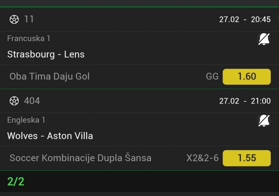 tip: sledeći gol 2 (66 minut trenutni rezultat 1:2)