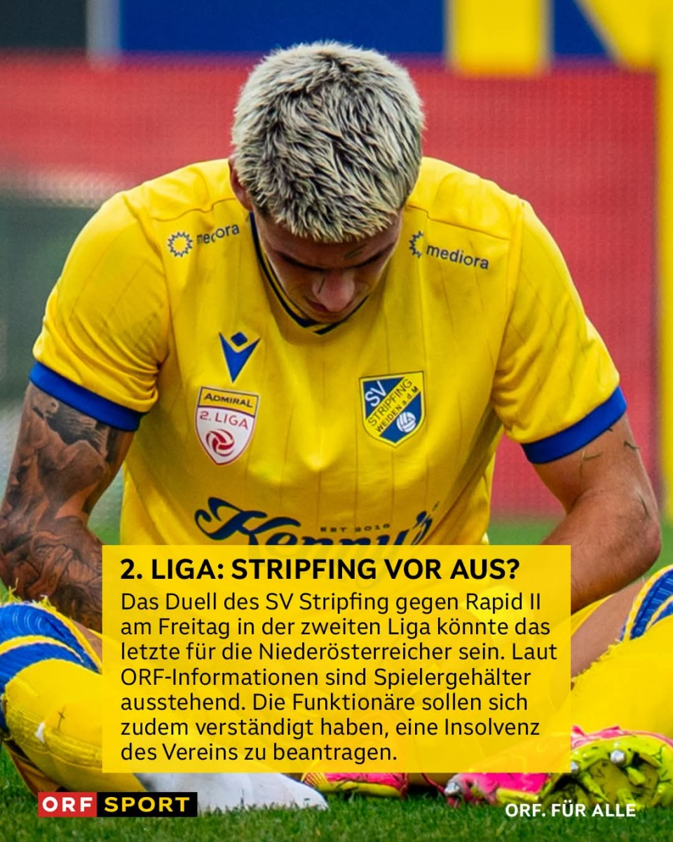 Stripfing je verovatno gotov. Mozda danas igraju svoju poslednu utakmicu druge lige Austrije. Podnjeli su zahtev za Bankrot. СВ Стрипфинг је вероватно готов.