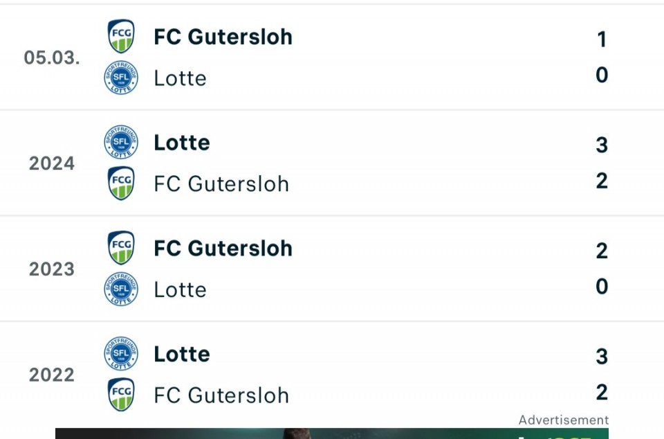 Lotte - Gutersloh 1 (2.90) 2-1/1-2(26.00/21.50)