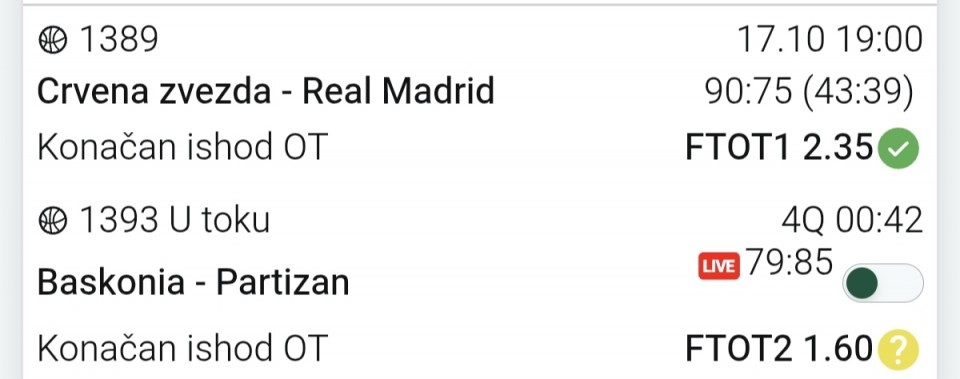 🏀Crvena zvezda- Real Madrid H1 (-7.5)