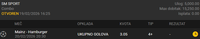 tip: over 3.5 (80 minut trenutni rezultat 1:2)