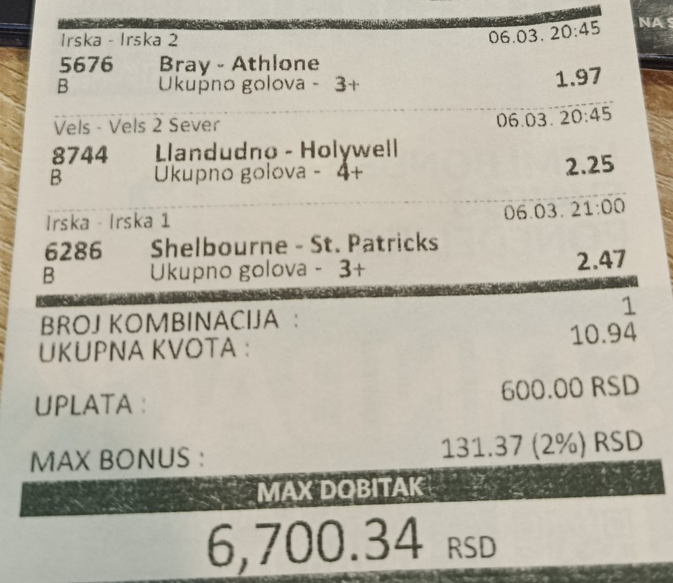 Ja sam mislio da ispratim sve utakmice po 500 ili 1000 dinara oba prelaza pa mozda da duplam kad uhvatim jedan ili da duplam dok ne uhvatim 2,ne znam ni sam.