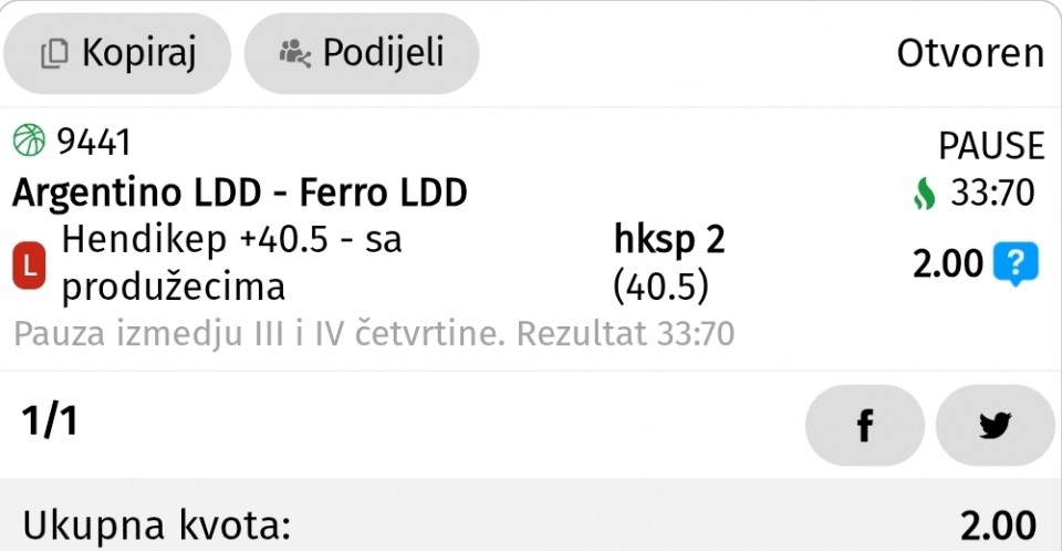 🏀KK Bosna - Buducnost FTOT 2 (1.23)✅