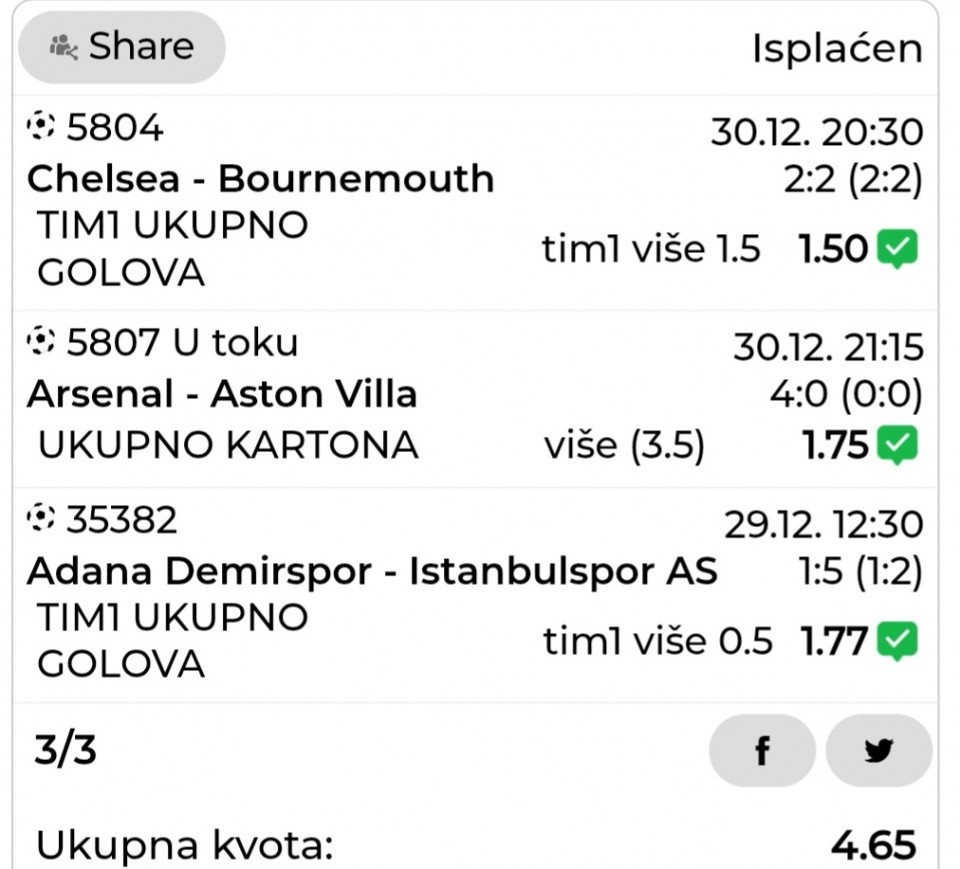 Kao i do sada, trudit ću se da svaki dan podijelim jedan tiket i dam svoj maksimum – bez velikih riječi i bez obećanja, samo realno i korektno. 📊