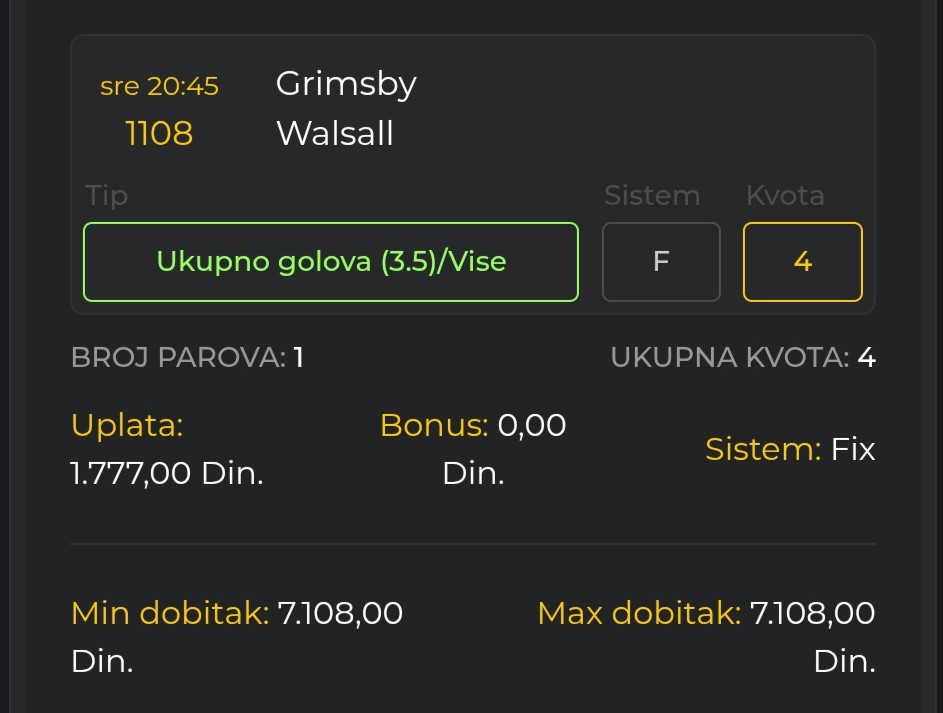 Ovaj tiket je bio plaćen, ali nije prošlo sat vremena od objave, a još sam naglasio da je dobitni, ali je skinut. Pravila se moraju poštovati, koliko sam čuo sat vremena između objava. Šteta za ovo, šteta za Arsenal. U komentaru jedan uživo da...Ovaj tiket je bio plaćen, ali nije prošlo sat vremena od objave, a još sam naglasio da je dobitni, ali je skinut. Pravila se moraju poštovati, koliko sam čuo sat vremena između objava. Šteta za ovo, šteta za Arsenal. U komentaru jedan uživo da ispoštuje o pravila i ne kačimp novu fotku jer će je skinuti Show more