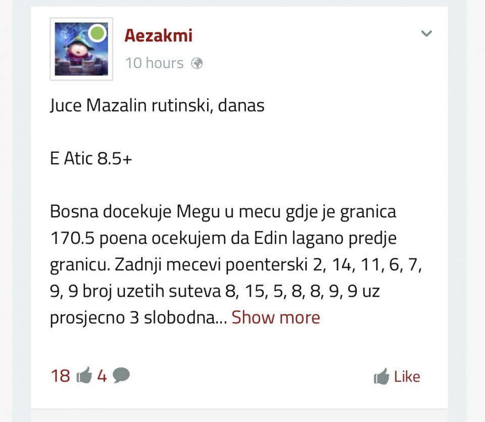 Upitan je za veceras, ali vrlo verovatno da ce igrati, ponovo cu se vratiti na njega, 2.5 mi deluje dosta nisko, pogotovo kada sada uzmem u obzir to da igra protiv Washingtona, ekipa koja po odbrani asistencija ubedljivo najgora u ligi, a on po mecu bez jokica na terenu belezi 7.3 prosecnih sansi za asistencije po mecu odprilike, tako da mi protiv ubedljivo najgore odbrane lige, i ujedno najgore odbrane po limitiranju asistencija za njega to veceras deluje dosta dostizno.