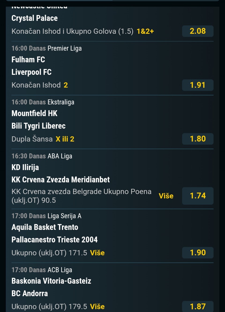 Danasnji tiket za sada ide lepo prvi par je prosao napoli 2+ i navijamo za dalje, ali reko da presecem sa necim sto me tera ceo dan da igram, pa ako me osecaj zafrkne jbg....