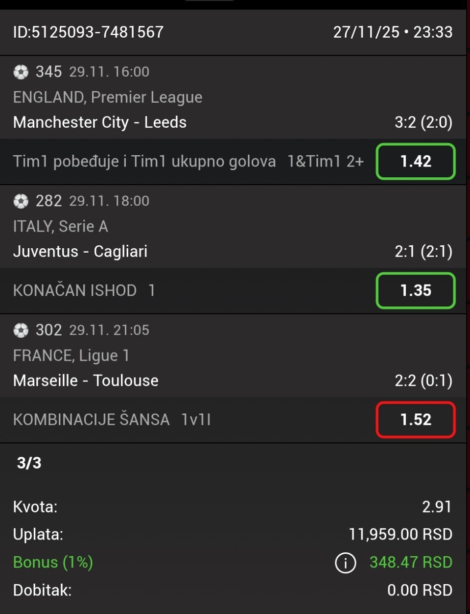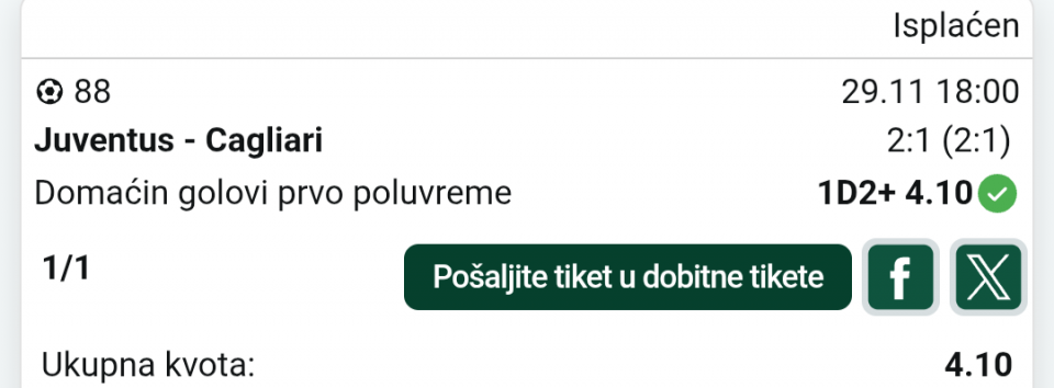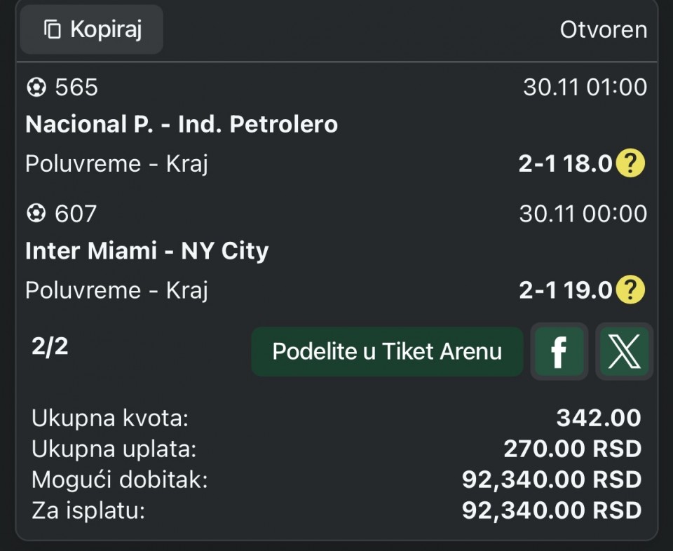 skidamo kvotu 3.21 🎯 na dupli keš + oba tiketa iz komentara došla