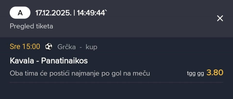 Bas je ovo visoka kvota..Panata u izmenjenom sastavu, a i bice rastereceni u igri sigurno..Mislim da Kavala moze da im utera barem jedan kod kuce..Bas je ovo nerealna kvota..Probajte na sitno