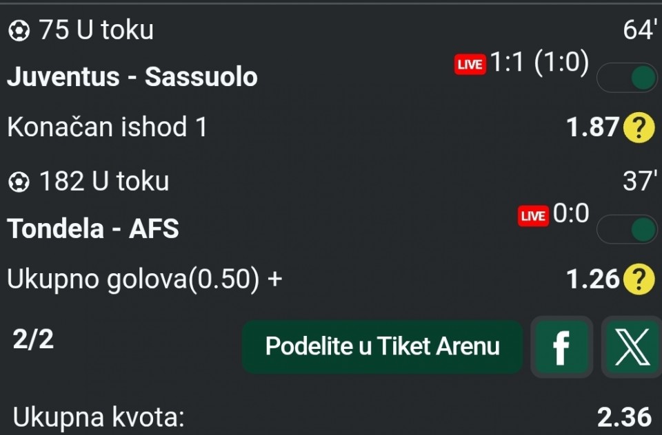 Ja sam probao ovo jagiellonia 1X, psg 2, Brentford X2 i shelbourne 2