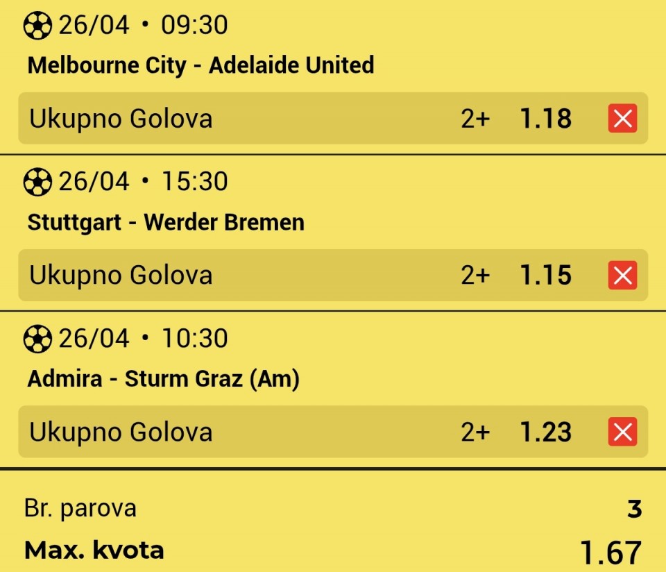 Juče sam krenuo sa ovim sistemom klađenja, tiketi su 2/2, lep profit sam ostvario.