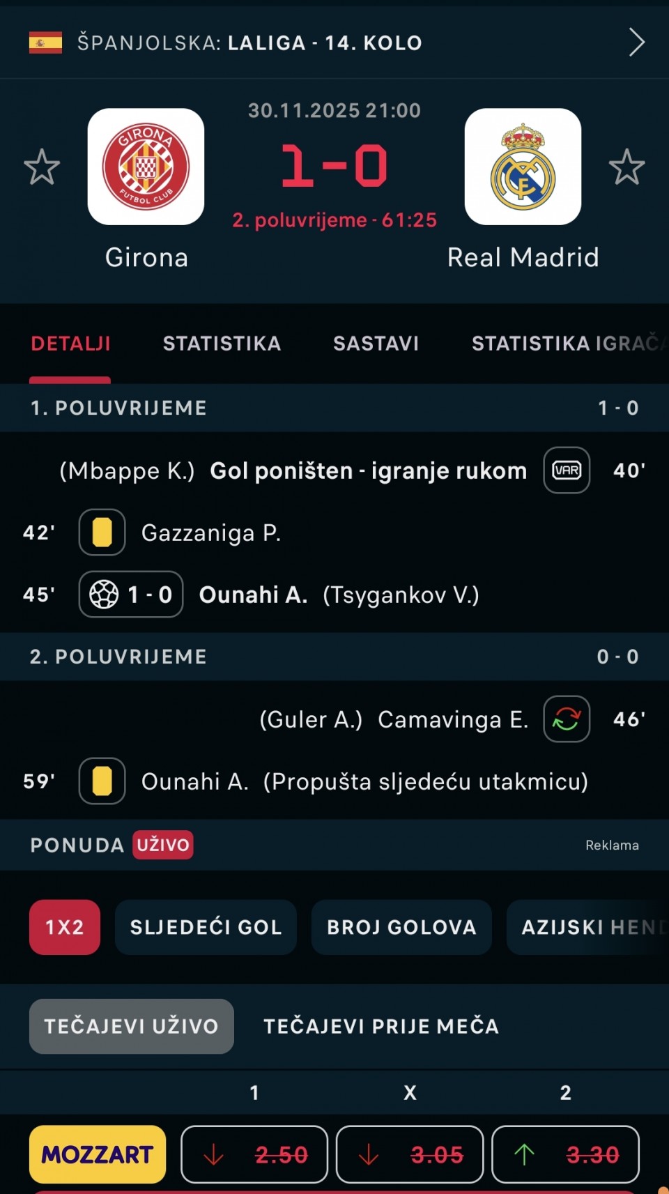 Uzivo HT 1:0