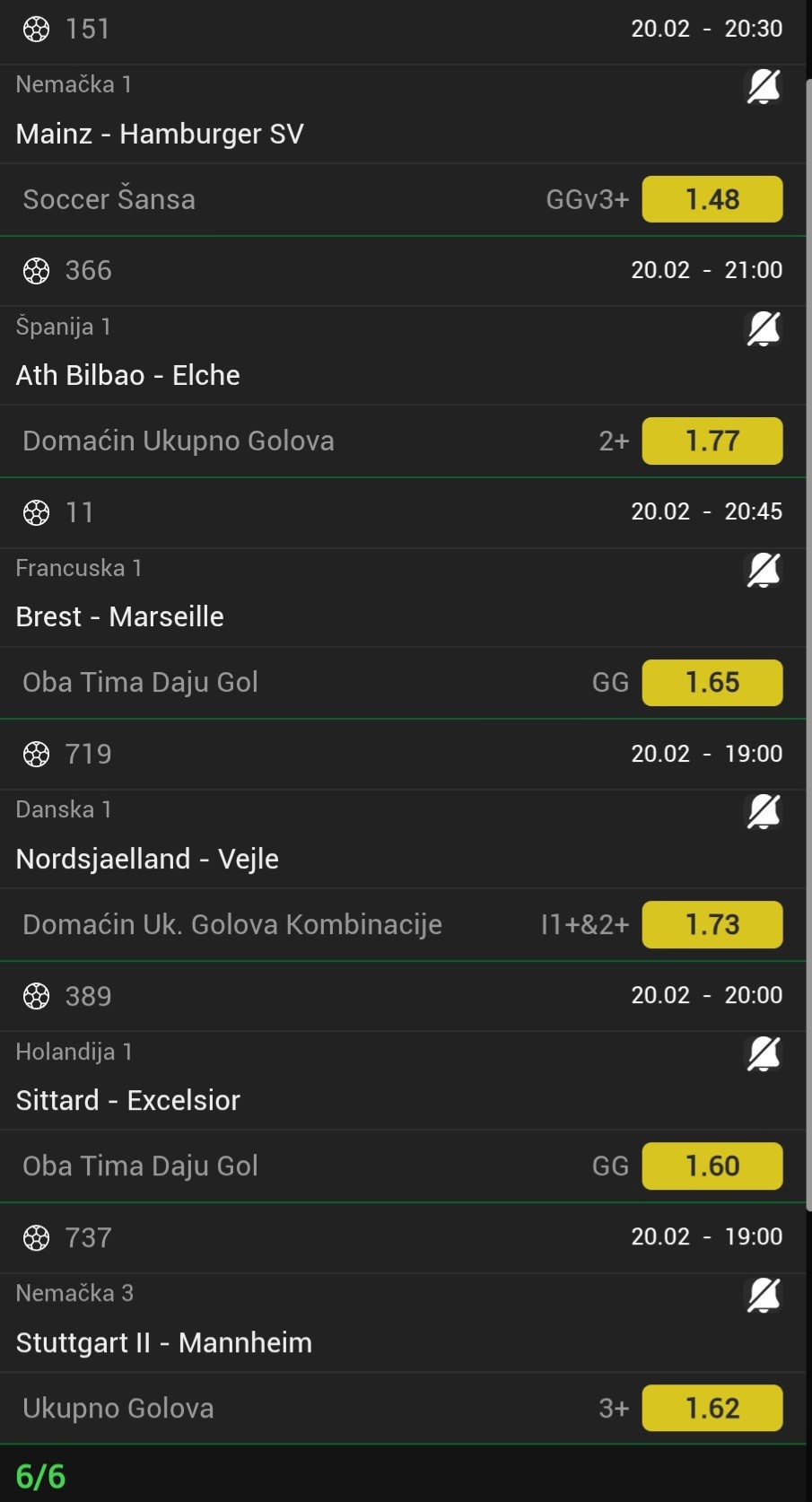 20.02. Kvota: 2.99 → drugi korak