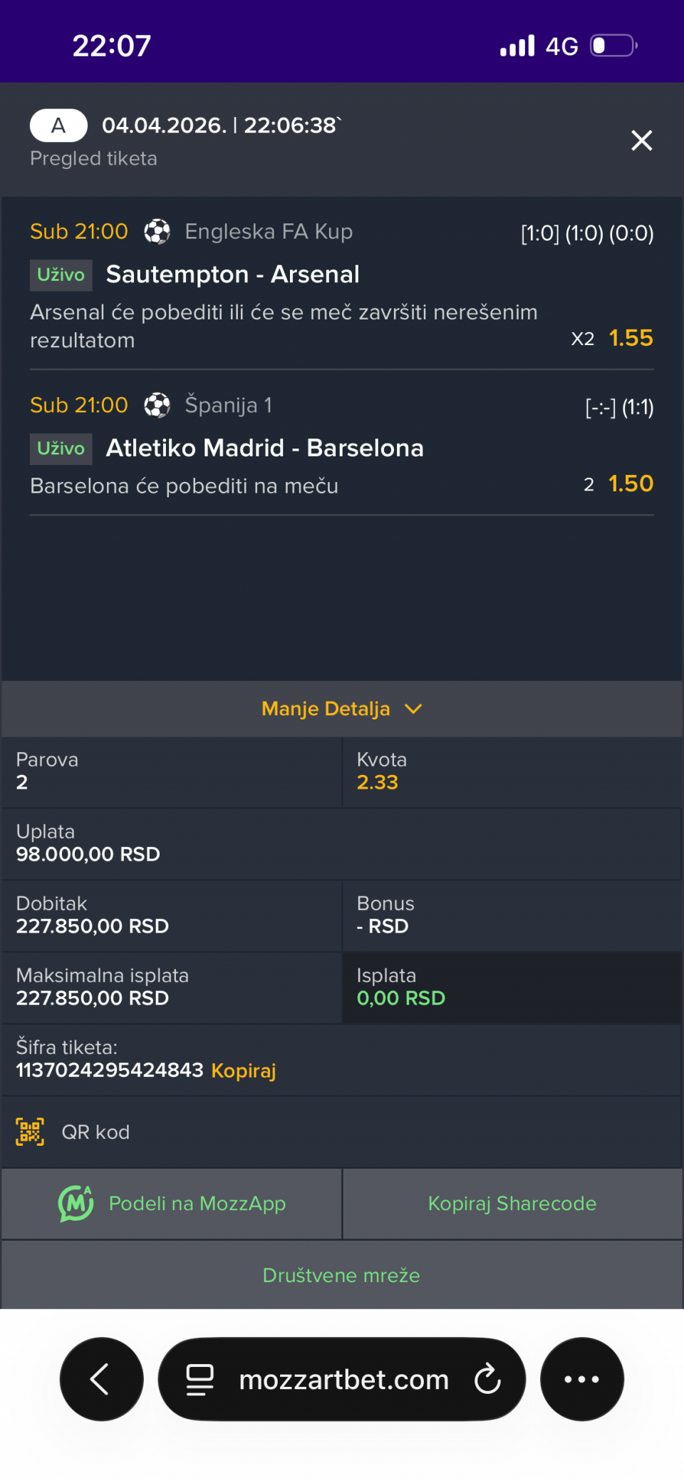 A što se tiče kornera Barselona je najbolja u Španiji sa skoro 7 kornera po utakmci. I ne samo to, nego Atletiko joj baš odgovara što se tiče njihove igra sa dosta ubacivanja i centaršuteva - na poslednjih 7 međusobnih duela Barselona izvodi minimum 5 kornera, pa stoga i taj dodatak da bi se dobila 3+ kvota...