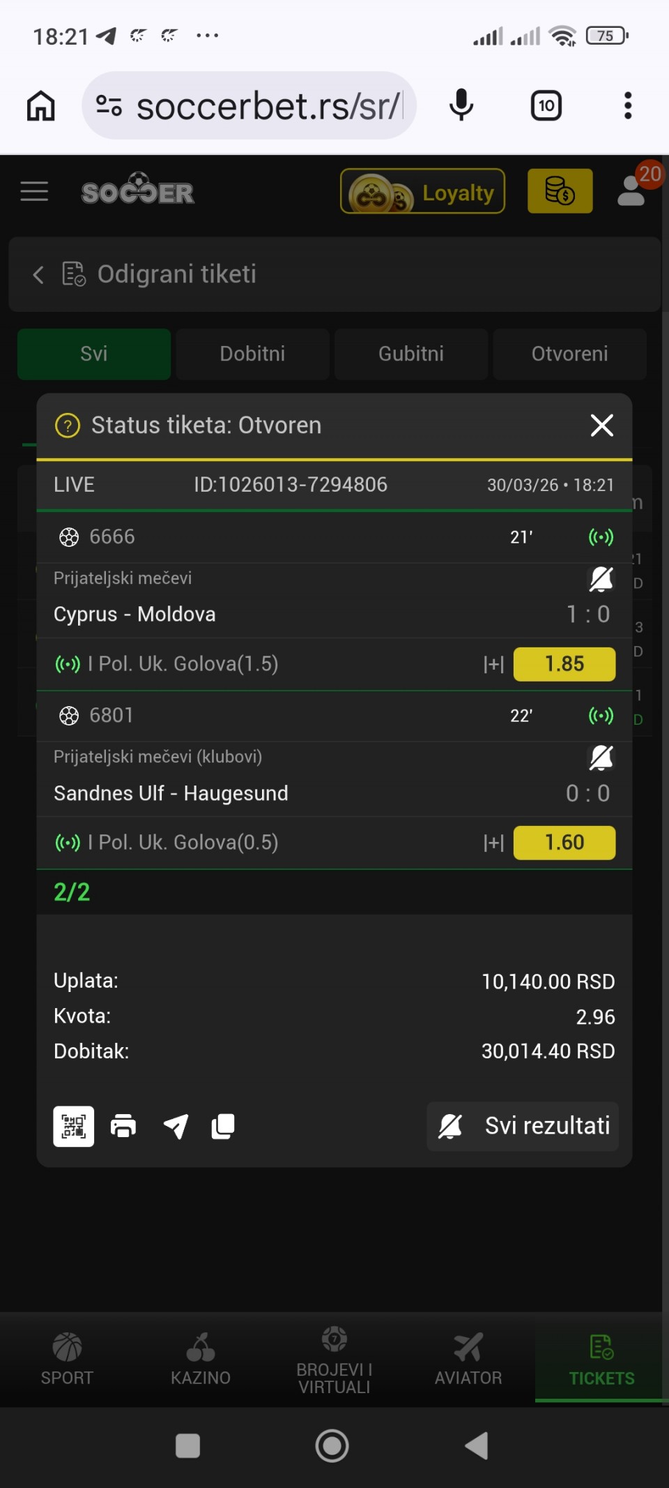 tip: over 2.5 ( 77 minut trenutni rezultat 1:1)
