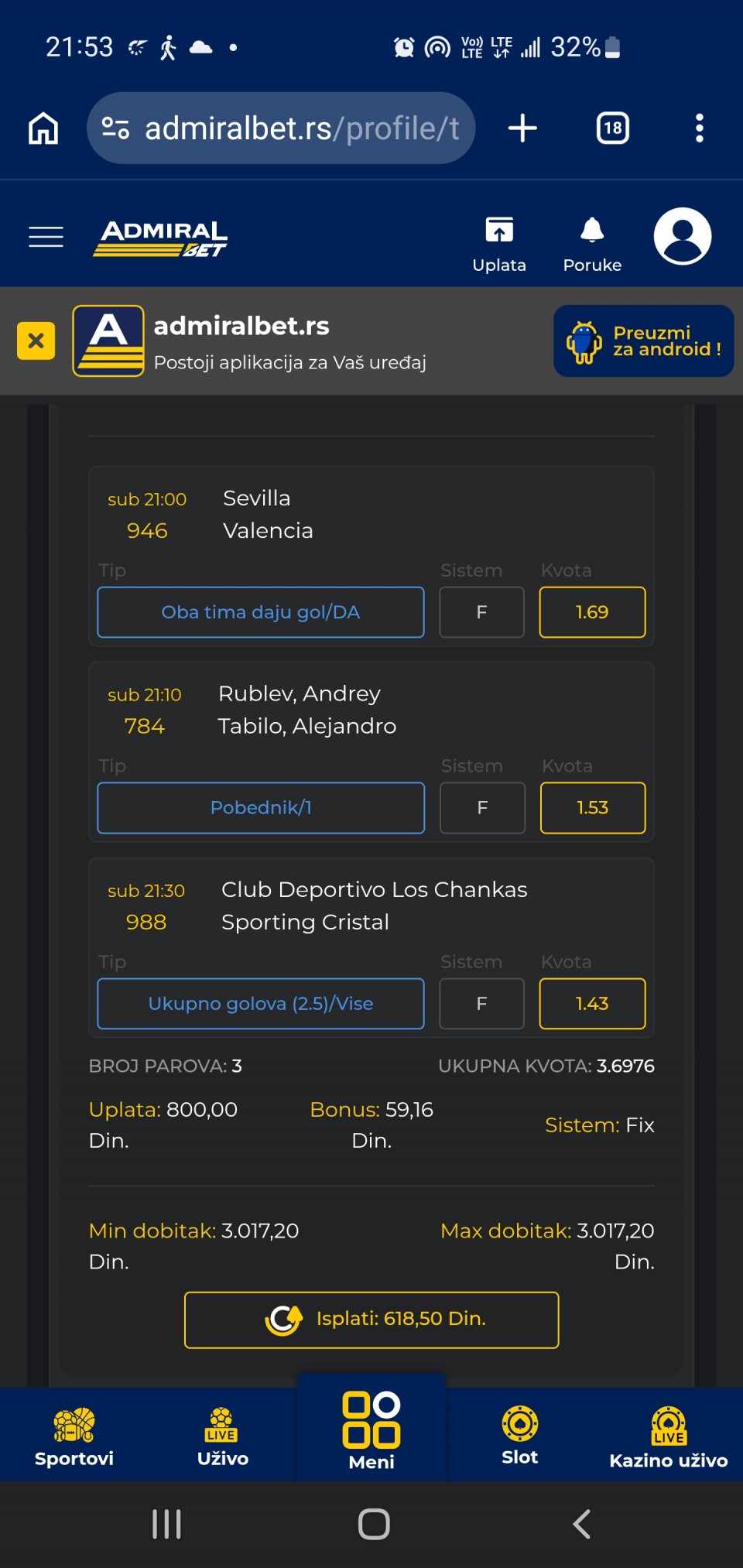 Znaci za oni koji su novi članova samo da se pojasni da postoje grupe na ovaj sajt. Kraljeve ledene igre je samo jedna grupa kreirana od Mima i je stvorena bas zbog dece koje bi izgubile pare za kifle pa bi krenulo vregjane. Ako idemo za to bas...Znaci za oni koji su novi članova samo da se pojasni da postoje grupe na ovaj sajt. Kraljeve ledene igre je samo jedna grupa kreirana od Mima i je stvorena bas zbog dece koje bi izgubile pare za kifle pa bi krenulo vregjane. Ako idemo za to bas zbog te dece su otisli mnogo dobri tipsera od ovog sajta. Prvo trebate naučiti sta je banka ,posle da ste strpljivi a i na kraj retko ko je postao milijunaš od kladionice. Pozdrav do svi i pamet u glavi Show more