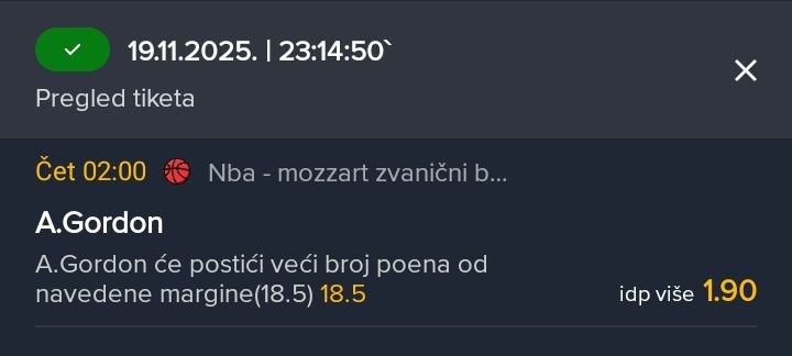 Singl 1: Aaron Gordon - 18.5+ Poena