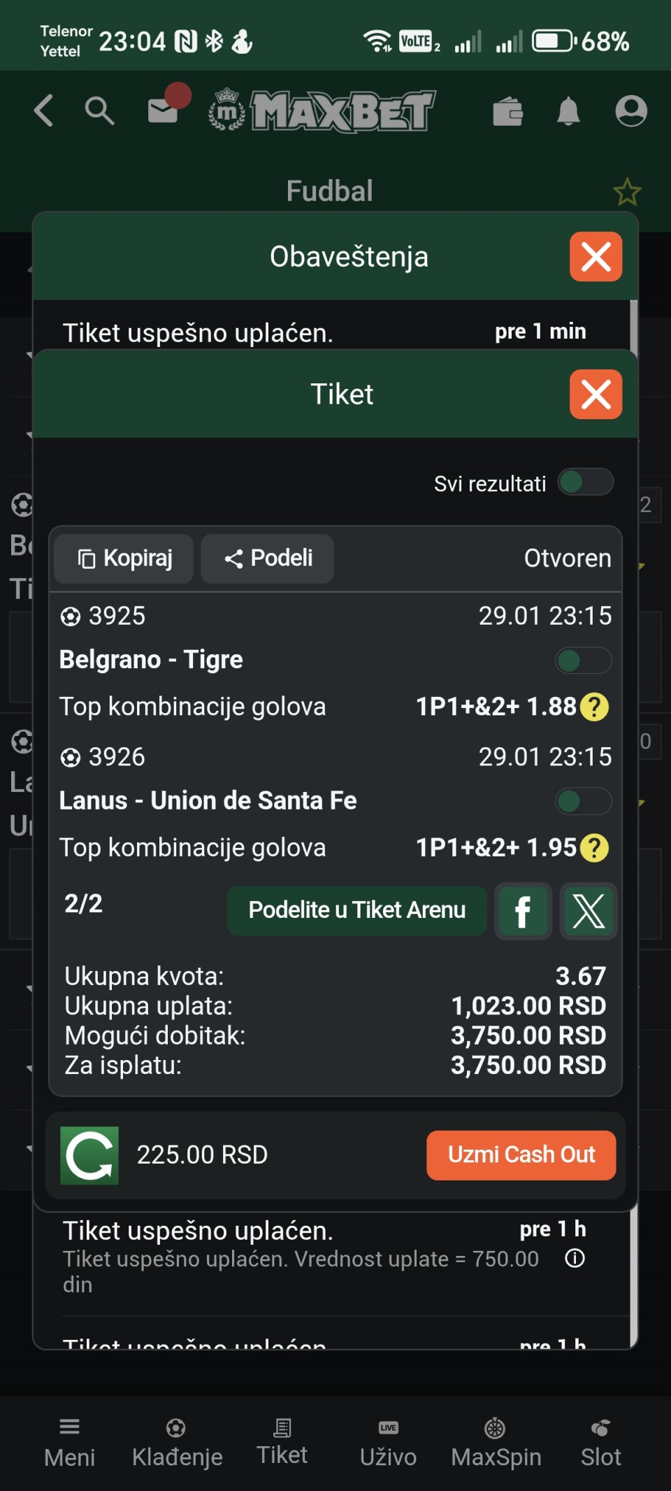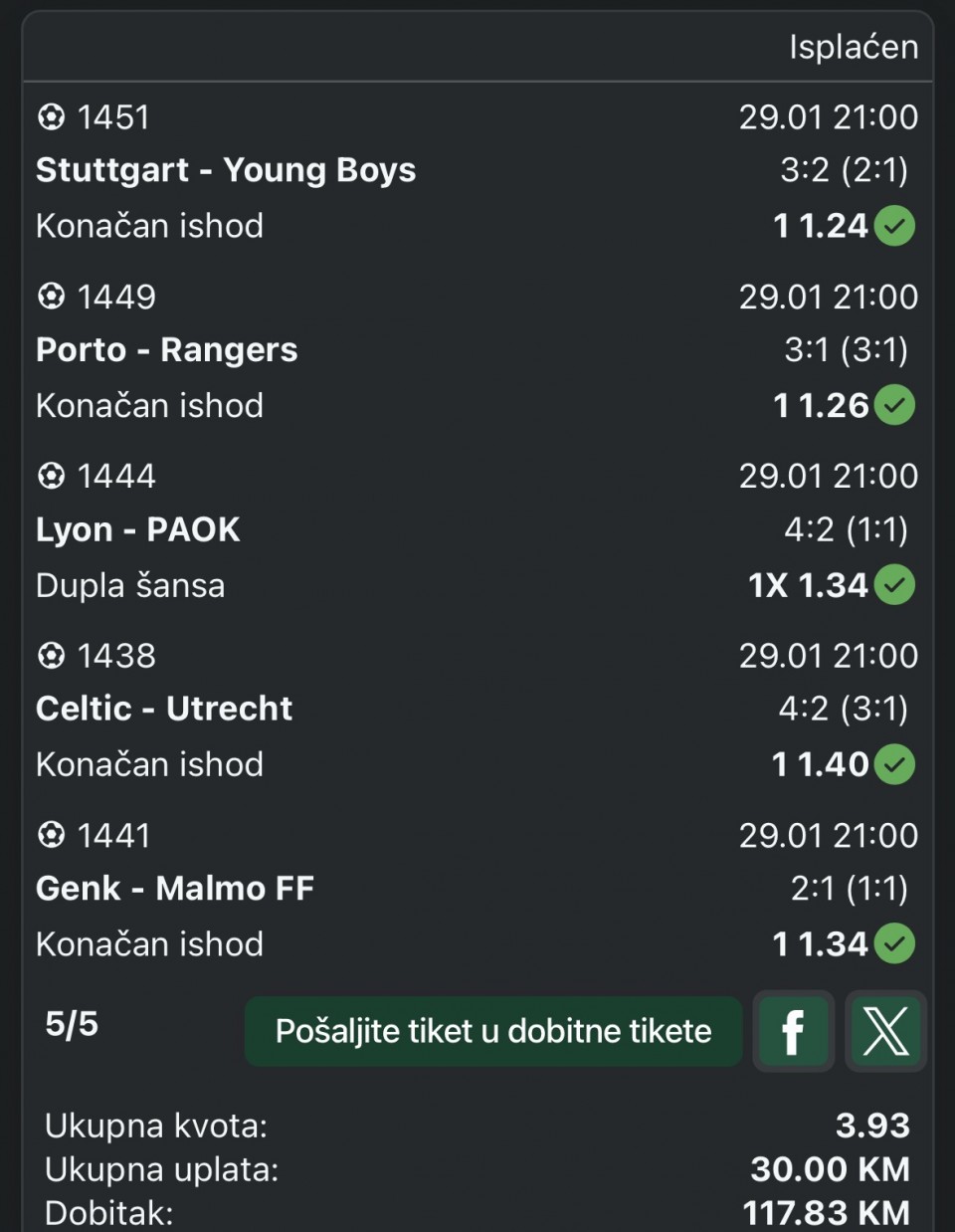 Za sutra jedan lagani tiket da se eto prati cisto pa ako neko hoce nek izabere nesto, srecno 💥