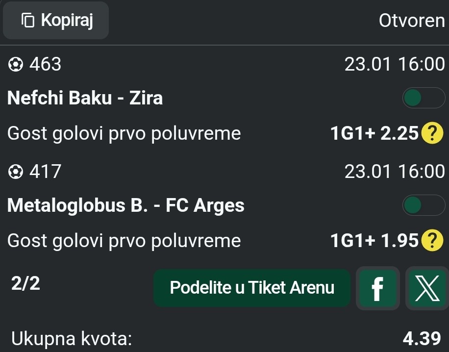 zbroj golova Nikola.Roganovic OVER 2,5 GOLA KOEF 1,38