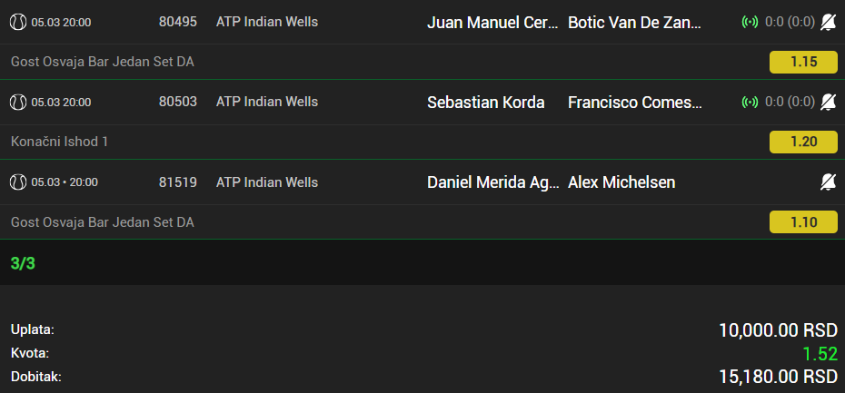 Moze li neki predlog za veceras kvote 5 za jaci ulog