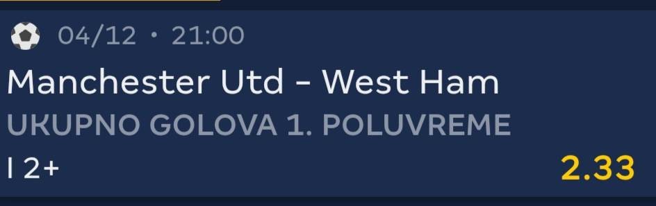 02 Tiket: 2.08 ❔ početna uplata...ponovo rizik na ManUtd, ali ovo je poslednji put, gledao sam da sastavim evroligu ili NBA tiket, al eto kao manja sigurica je prevagnulo ovo