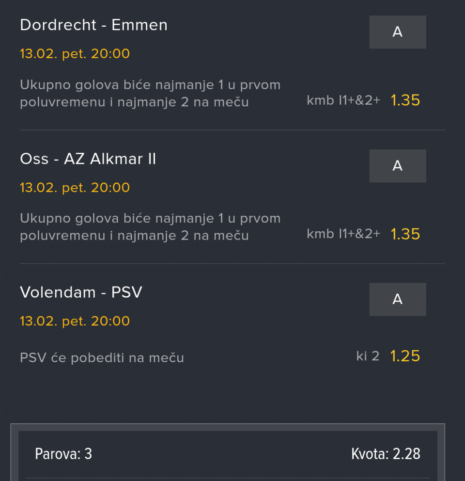 Dajte braco da napravimo jednu zajednicku zmijicu za od sutra do sledeceg petka. Ima na izvoz tekmi, dajte predloge u komentare.