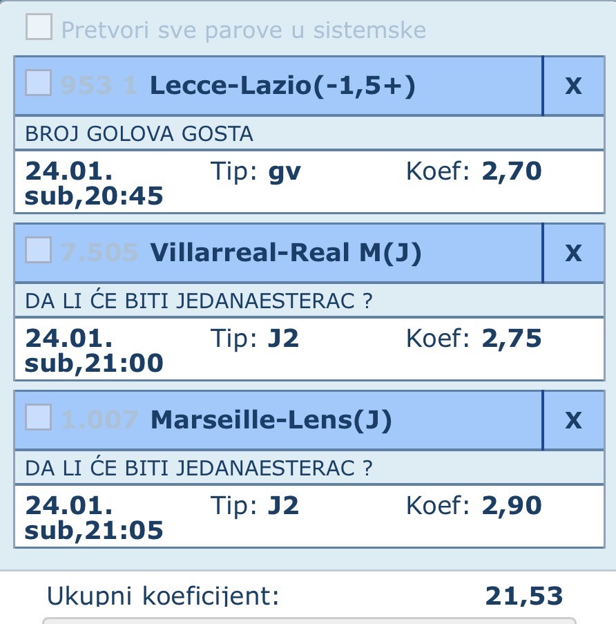 Tieket sa sajta od svakog po tekma 🤣. Ovo mu dodje kao Bonus tiket 🤣.. ibb.co/0RtvLPT1