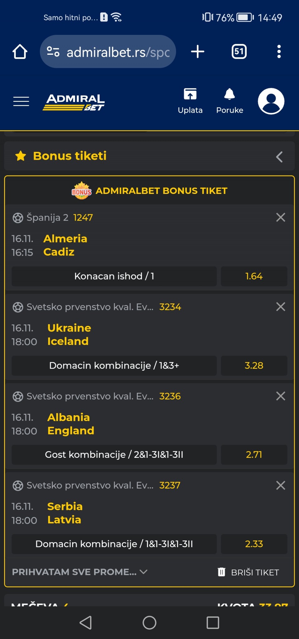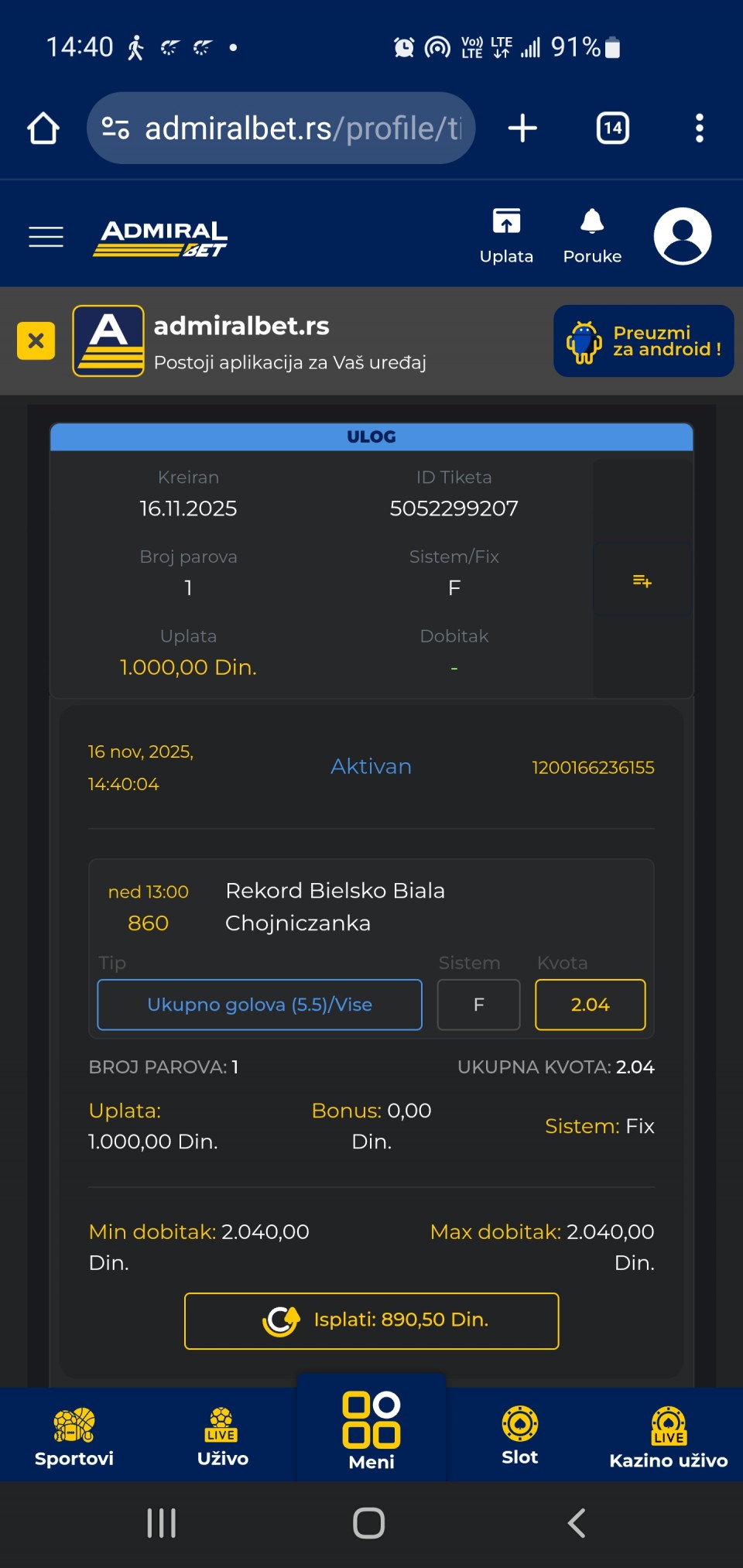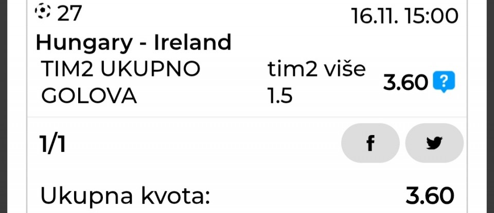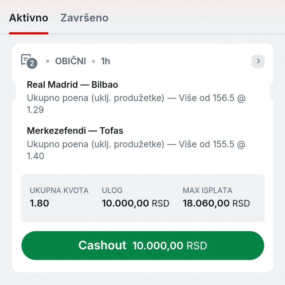 Krenucemo sa jednim laganim tiketom, uglavnom igram lajv, al takvo je vreme doslo da mora i neki tiket pre meca da se odigra.