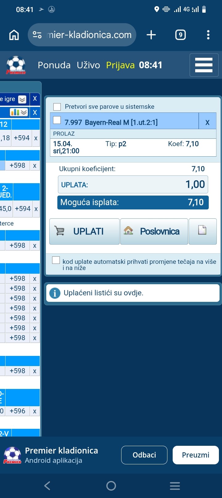 Tu je oko 9 kvota, vrlo prijatan tiket