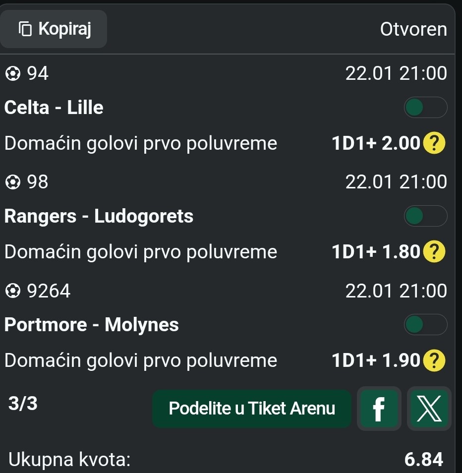 📌Sretno ukoliko neko prepiše, ja sam odigrao sve igrače na jedan tiket, na manji ulog. 🍀