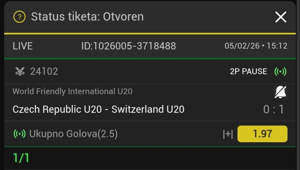 tip: over 1.5 (69 minut trenutni rezultat 1:0)