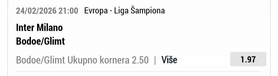 Inter kormilari talijanskom ligom i sada moze sav fokus da prebaci na sustizanje rezultata.Vrlo su potentni u napadu a Bodo,koliko god je iznenadjenje sezone,je jedna ekipa na domacem a druga na gostujucem terenu.Pobjeda protiv Atletiko Madrida u gostima mislim da vise govori o Atletiko Madridu nego o njima.Inter mora sustici 2 gola razlike i vise vjerujem u njihov napad nego u odbranu,tako da mi je prva opcija da daju gol u oba poluvremena.
