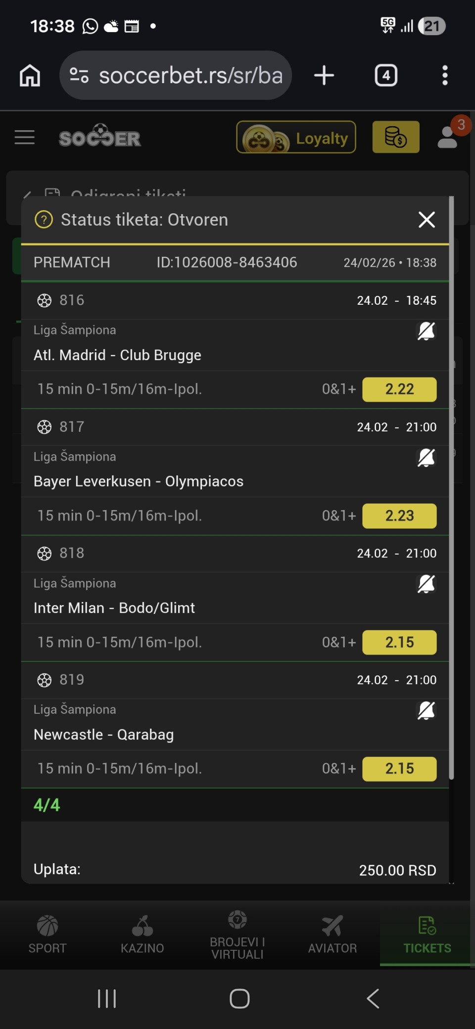 "Over/Under 2.5 Goals" i "Full Time Result" dublovima, svakako mi je cilje, profit od 10 winova, pa podižem 💰🤝 6 hours ago