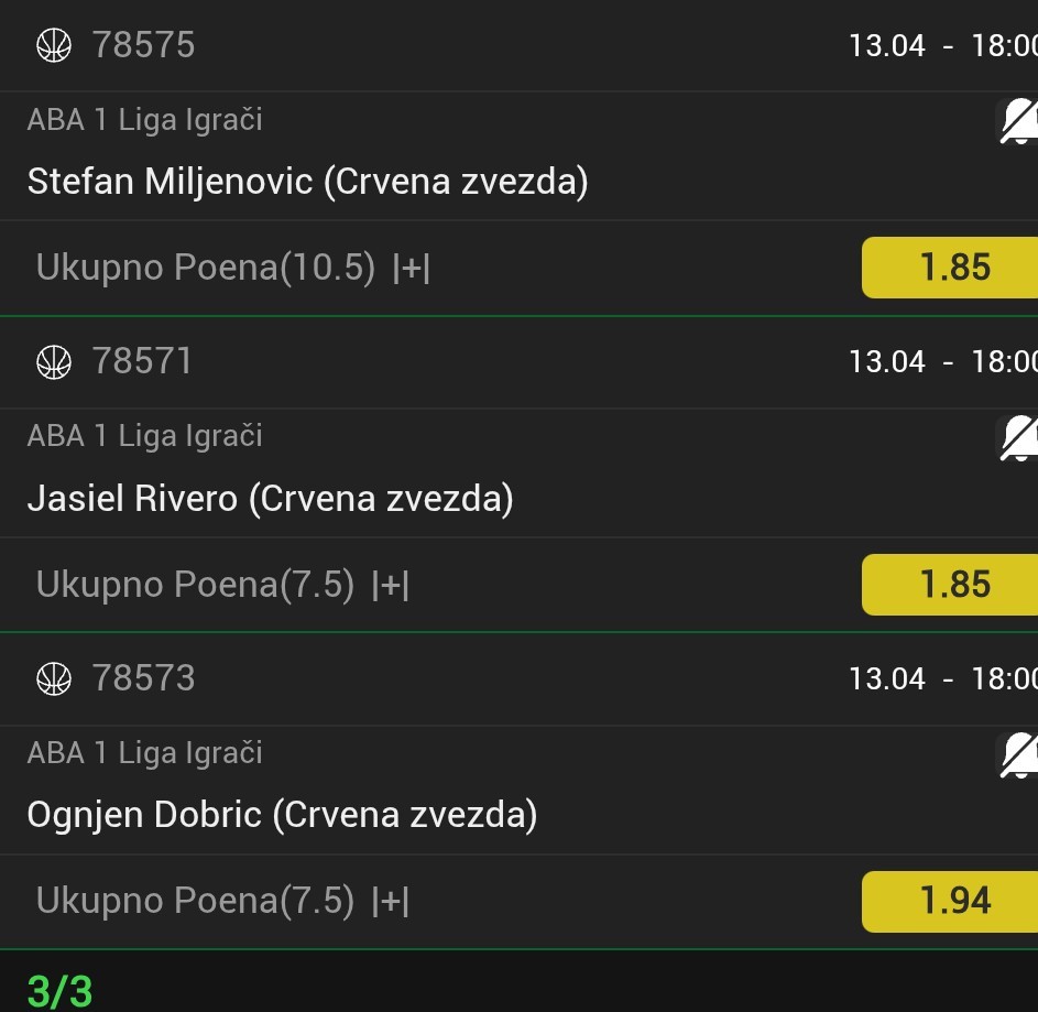 - Zvezda - Cluj D 95,5 - ( mislim da ce glavni igraci odmarati danas ili imati minimalnu minutazu, fokus je utamica sa Realom , ne verujem da ce postici vise od 85,86 p )