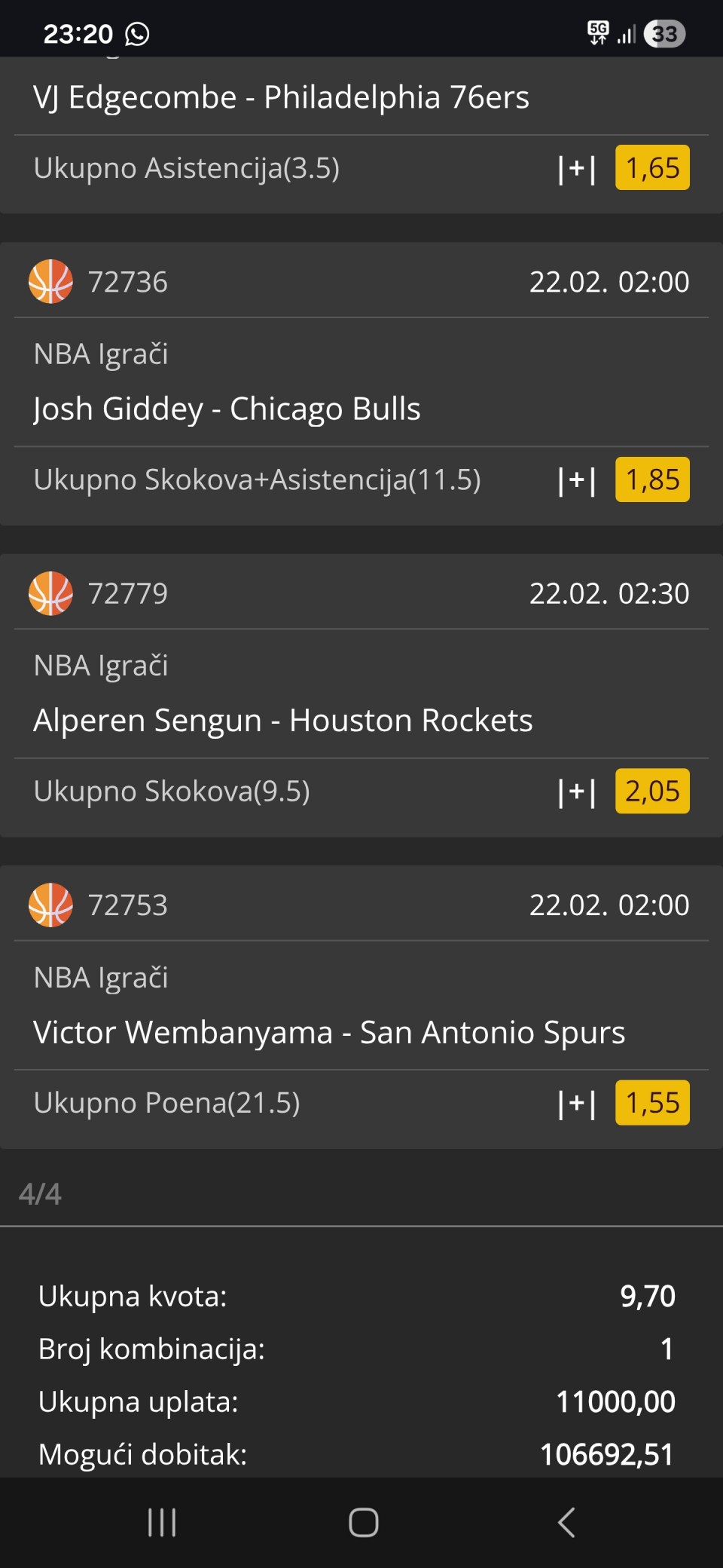 22.02. Kvota: 2.36 → prvi korak ✅