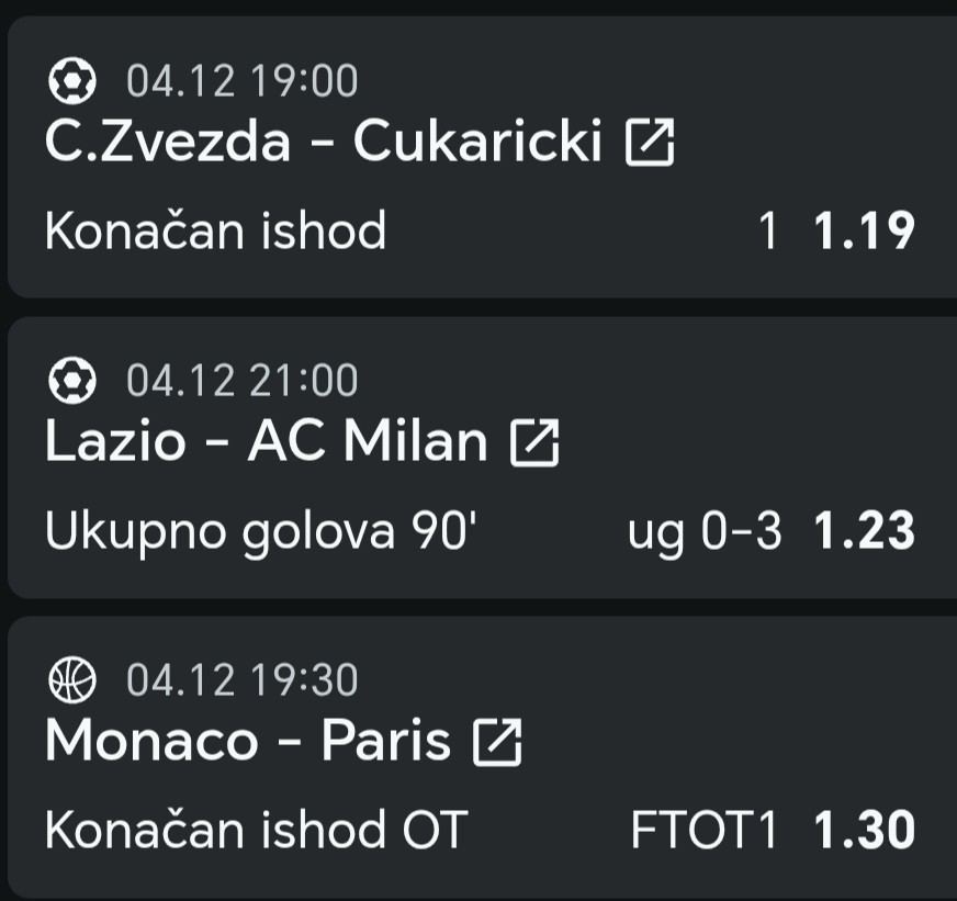 statistiku za predloge ne vodim, biće u komentaru win ✅ pad ❌