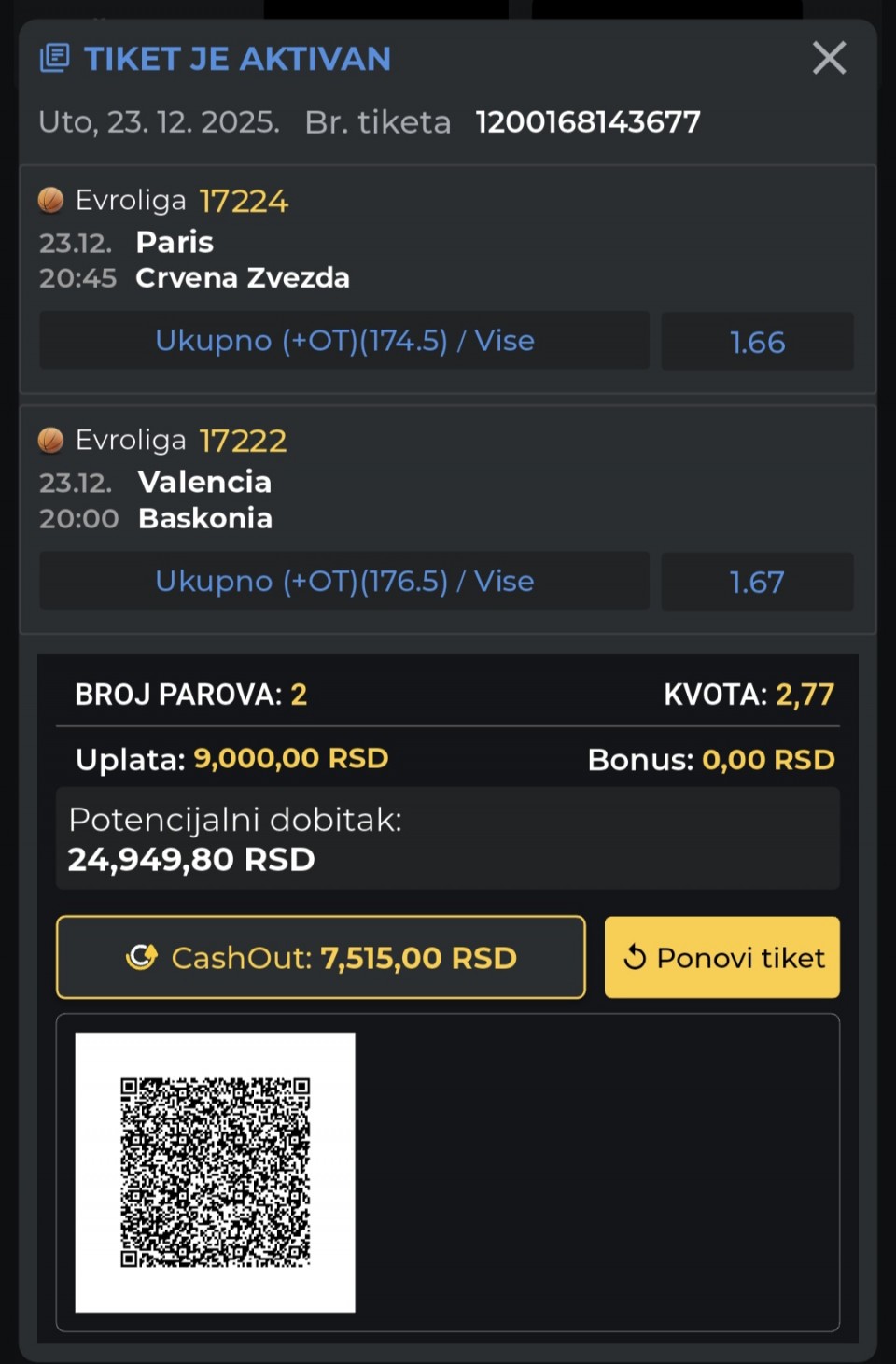 Za danas sam izdvojio jedan EVROLIGA SINGL.