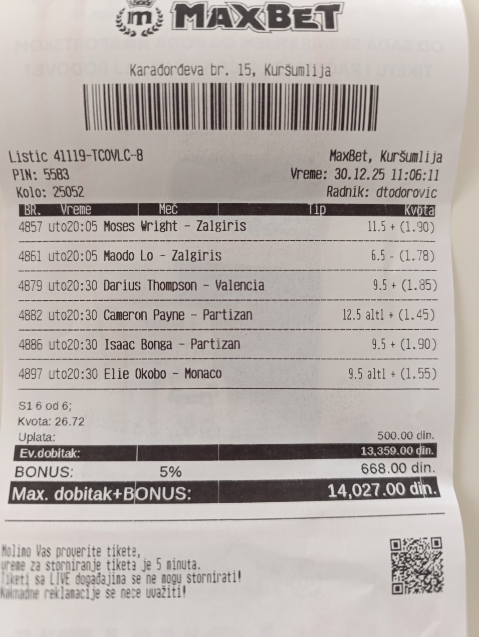 Moram priznati da sam ocekivao vecu granicu za jednu trojku od ove granice, a em je granica manja em povecana kvota, tako da mi ovaj tip ima veliki value...30.12.2025