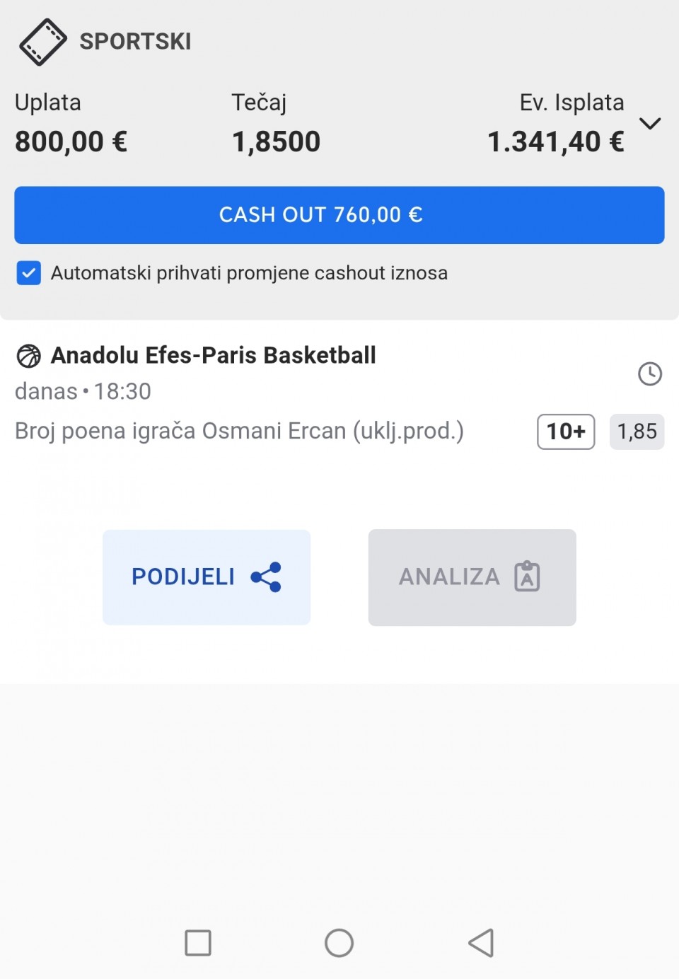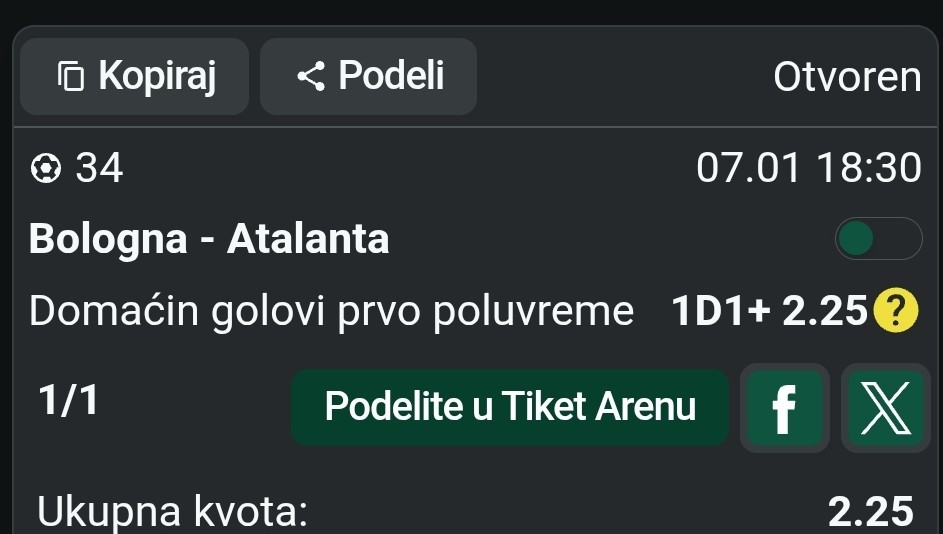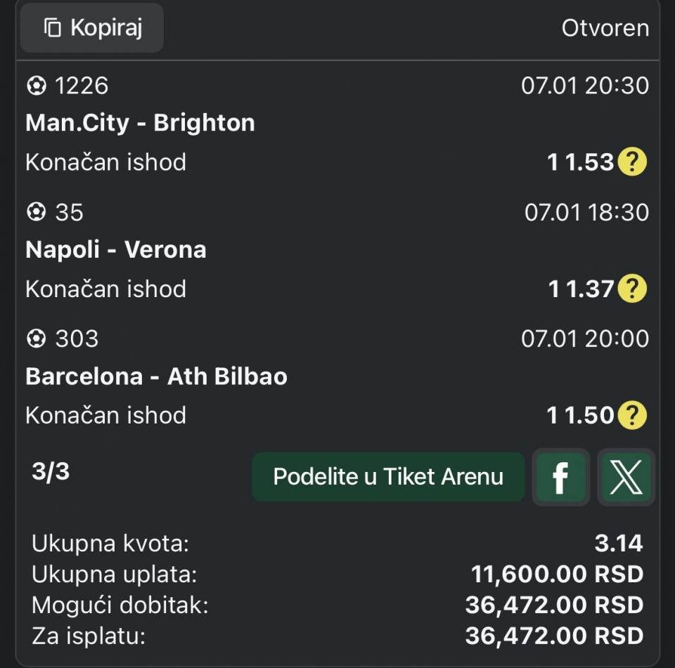 Ukupan koeficient: 3,3 zavisi od kladionica