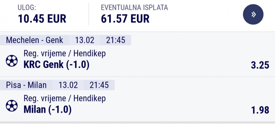 20.45h. Piza - Milan Tim 2 2+ (1,77)