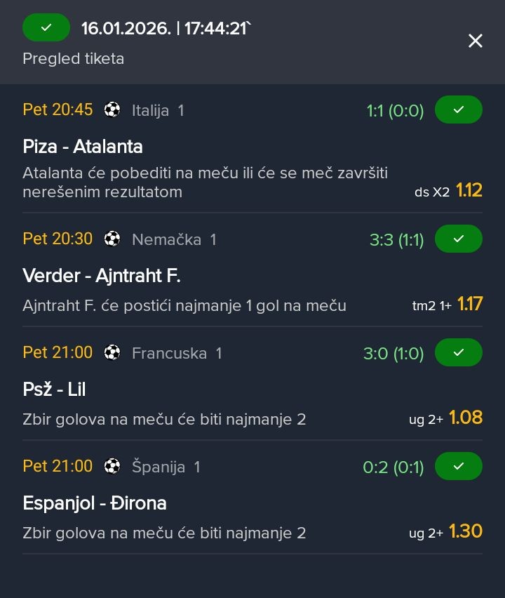 -Od pet zadnjih meceva , 4 overa na ovu granicu.