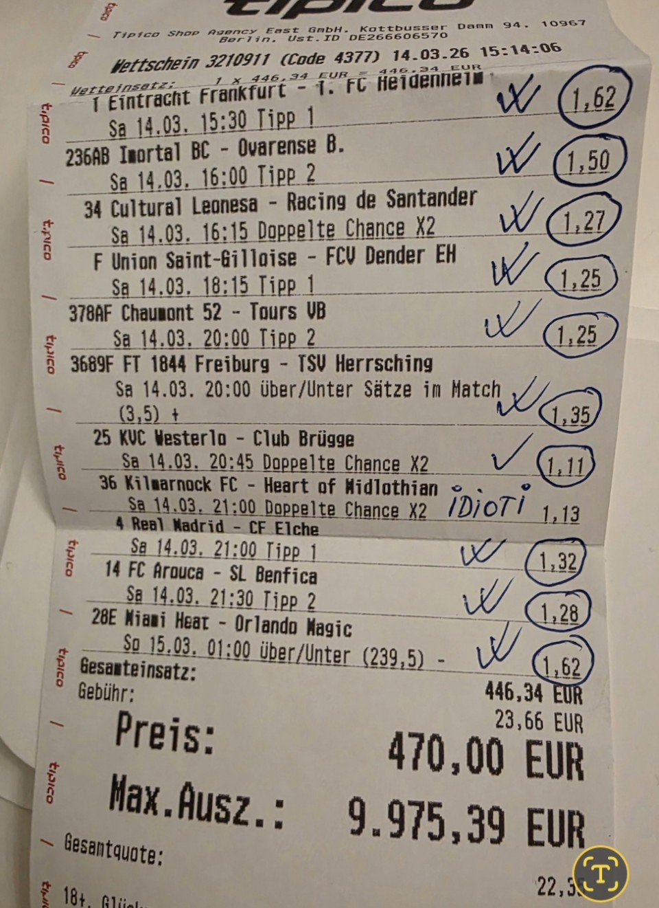 Jedno pitanje. Real nije mijanmar ili banglades 3. liga. Naime, nisu hteli da ga obeleze kao pogodak iako je bilo vec uveliko 3:1 i srusili mi tiket, tj. Nisu mi dali cash out monako je vec bio 2:0 i uzeo bih. Pored ovog tiketa nisu pozeleneli real...Jedno pitanje. Real nije mijanmar ili banglades 3. liga. Naime, nisu hteli da ga obeleze kao pogodak iako je bilo vec uveliko 3:1 i srusili mi tiket, tj. Nisu mi dali cash out monako je vec bio 2:0 i uzeo bih. Pored ovog tiketa nisu pozeleneli real na jos jednom tiketu. Imam skrinsotove da li imam neke sanse. Okacicu taj drugi u koment Show more