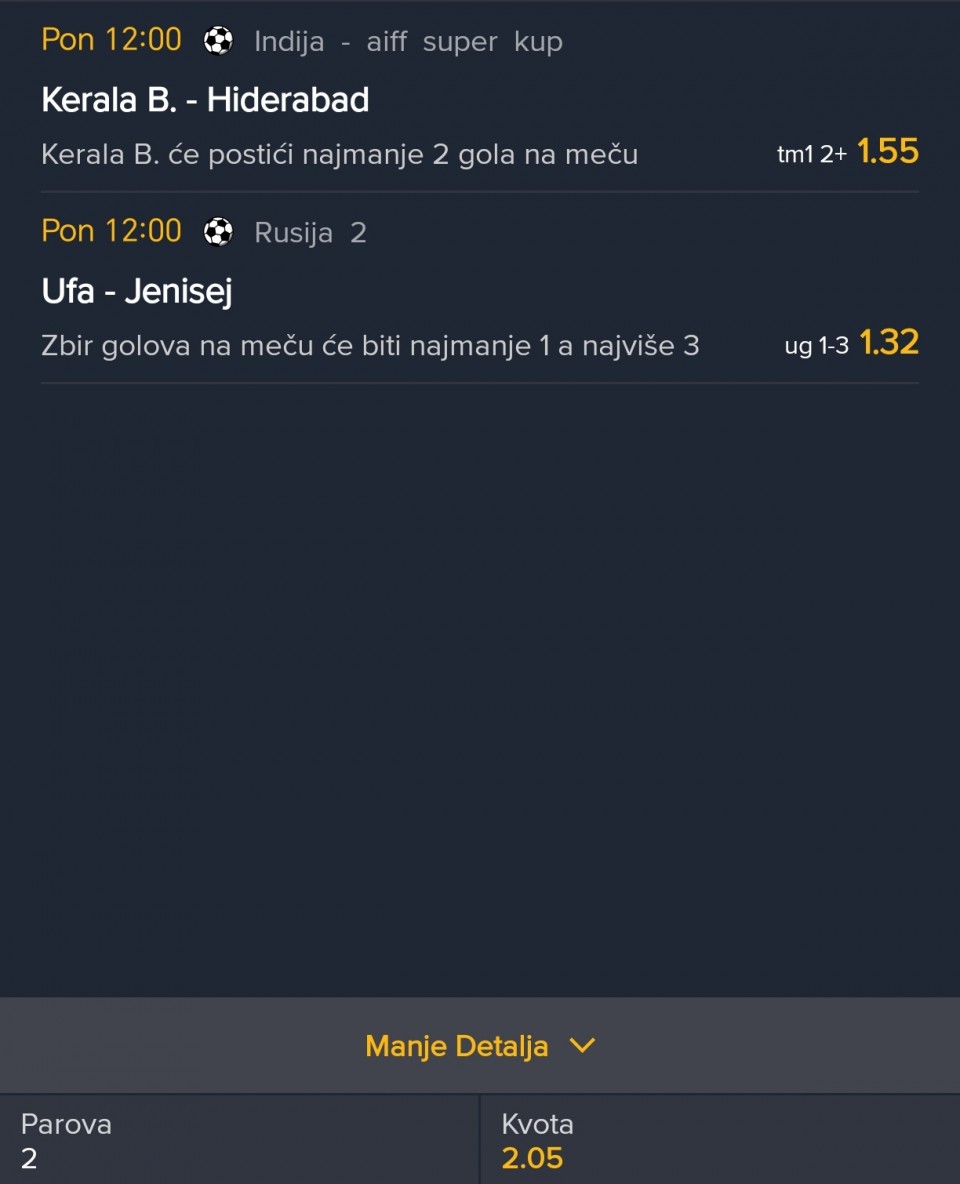 Ovom doubleu dajem sigurnost 5/10 i ulog 12%.