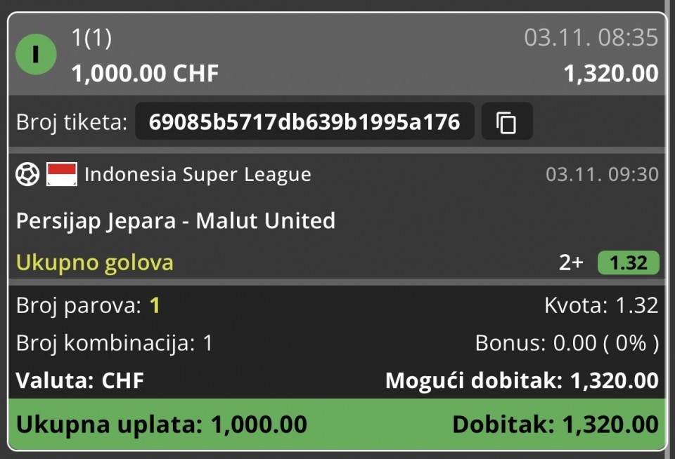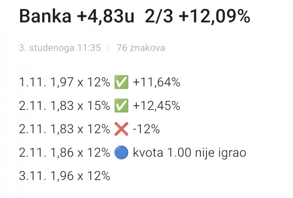 2.11. 1,86 x 12% 🔵 kvota 1.00 nije igrao