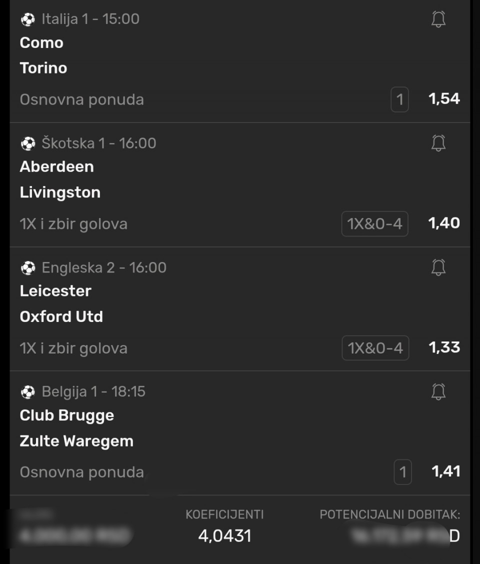 4 utakmice i ukupna kvota oko 4.