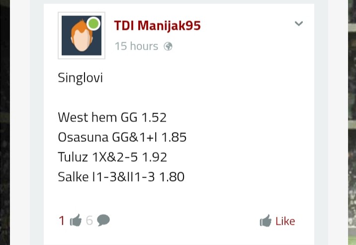 Danas sareno. Ko voli nek izvoli. Licno mislim da je Getafe - Sevilla poklon kvota.